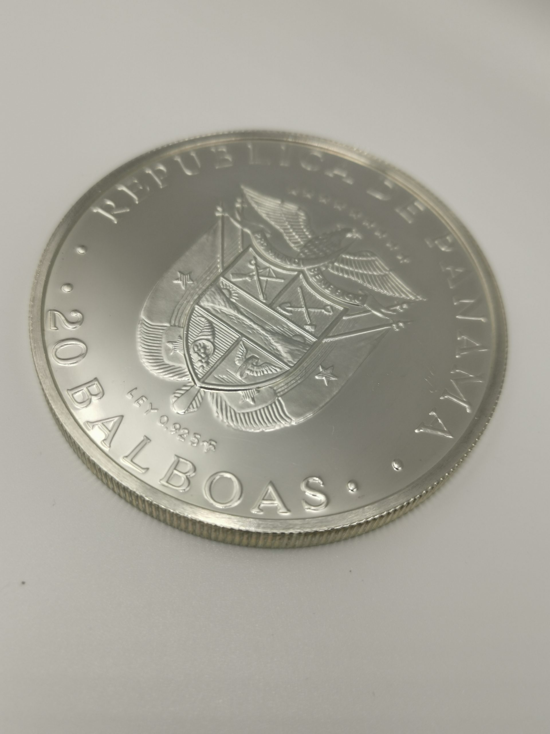 Die Vorderseite der Münze zeigt das Porträt von Sir Francis Drake, während die Rückseite das Wappen von Panama und den Nennwert von „20 Balboas“ zeigt. Es ist wichtig zu beachten, dass aufgrund des hohen Silbergehalts und des historischen Kontexts dieser Münze der Sammlerwert oft höher sein kann als der Nennwert.