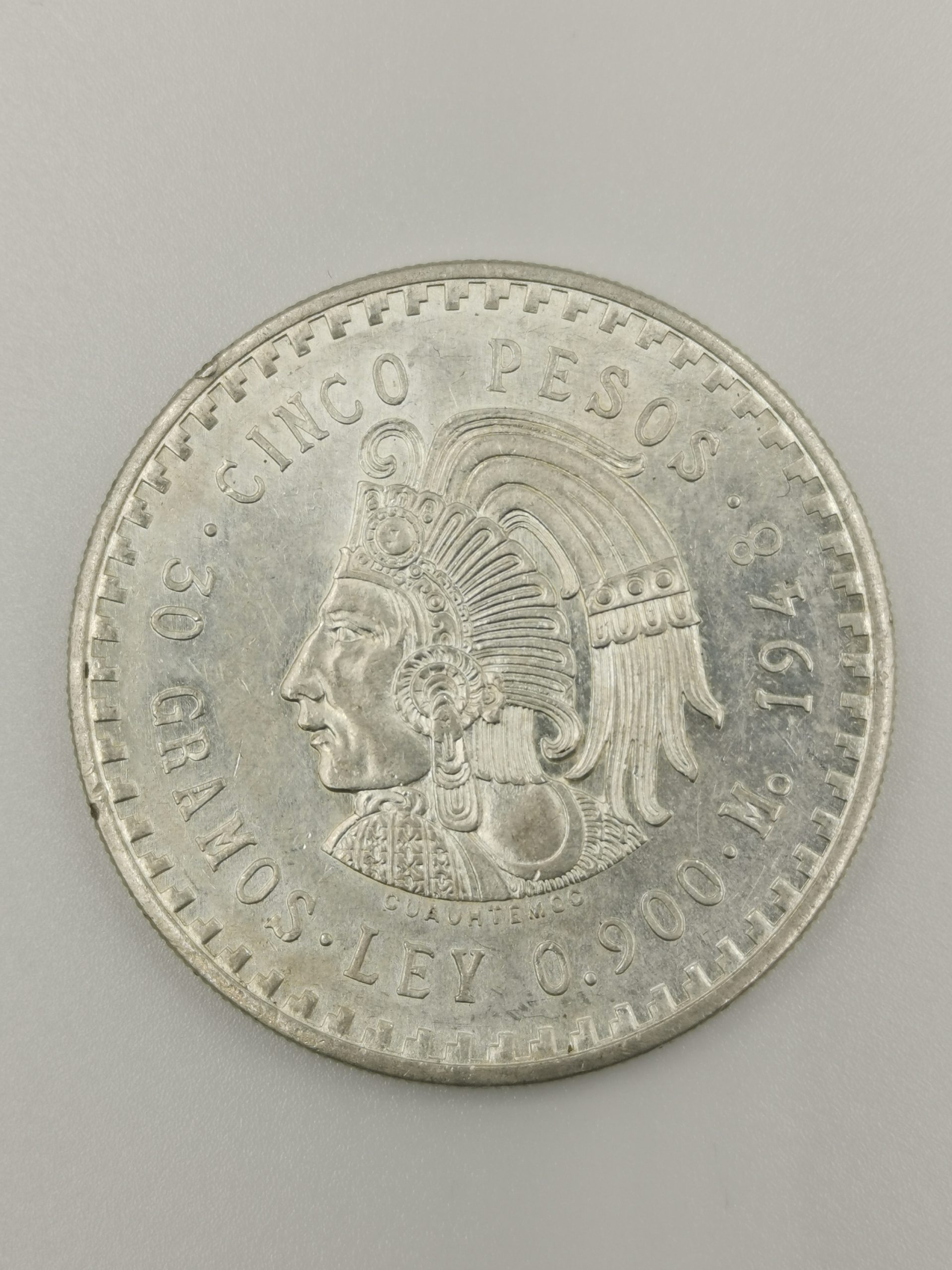 - Gewicht: Die 5-Pesos-Münze aus Mexiko von 1948 besteht aus 72 % Silber und wiegt etwa 30 Gramm.
